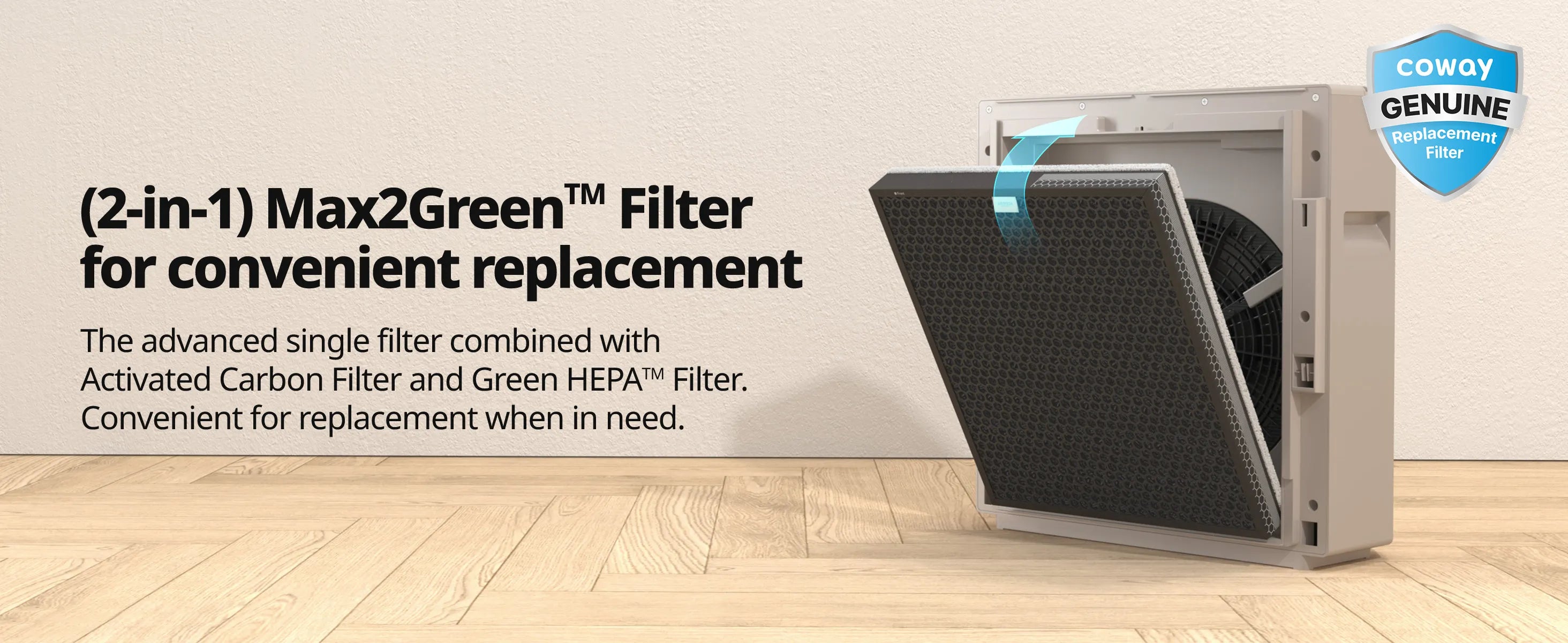 ² 99.9% of viruses, bacteria, fungi, and pollen were verified to be removed from the air by Coway air purifiers with GreenHEPA⢠technology applied filters based on the Japan Food Research Laboratories (JFRL) testing according to JEM 1467 standard. Tested with AIRMEGA AP-1516D, AIRMEGA AP-1220B, AIRMEGA MIGHTY air purifiers and additionally AIRMEGA 150, AIRMEGA 250, AIRMEGA 300S, AIRMEGA 400S will acquire the test report in 1H, 2022. All tested by JFRL and received above result within below time.