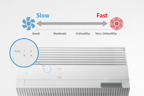 ¹ Coway air purifiers has been proven to trap dust, pollen, dander, viruses, and bacteria in the air based on KCL (Korea Conformity Laboratories) testing. They have been tested in a 30㎥-size chamber according to the Korea Air Cleaning Association standard (SPS-KACA 002-132:2018 Modified) to measure the 0.01㎛ size of particle removal rate. It was tested on maximum fan speed in normal room temperature and humidity conditions. The performance may vary in the actual living environment of customers.