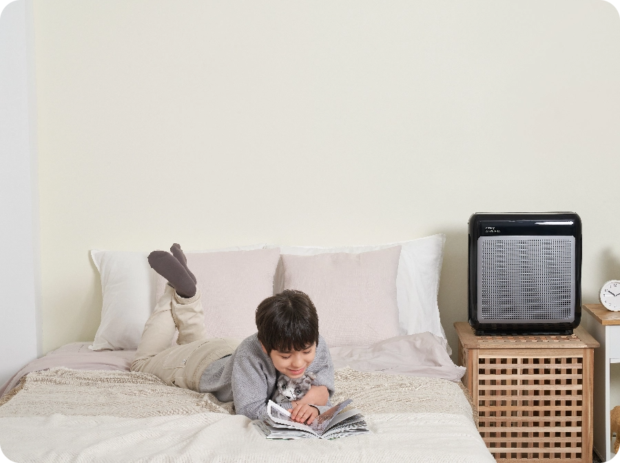 ¹ Coway air purifiers has been proven to trap dust, pollen, dander, viruses, and bacteria in the air based on KCL (Korea Conformity Laboratories) testing. They have been tested in a 30㎥-size chamber according to the Korea Air Cleaning Association standard (SPS-KACA 002-132:2018 Modified) to measure the 0.01㎛ size of particle removal rate. It was tested on maximum fan speed in normal room temperature and humidity conditions. The performance may vary in the actual living environment of customers.