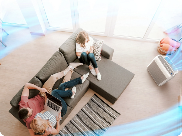 The pollution monitor indicates air quality throughout the day, adjusting purification to the necessary level.