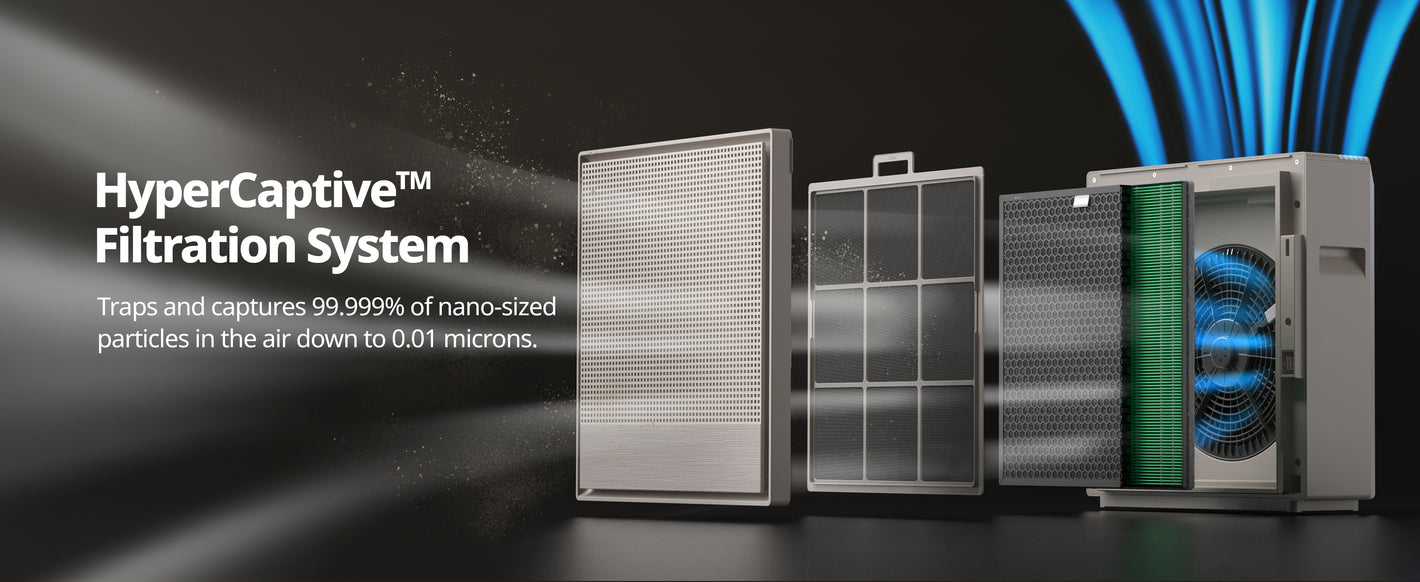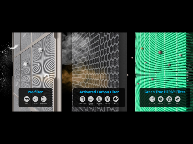 Easy-to-clean, reusable Pre-filter is engineered to quickly slide out for washing, as well as Speed dry when haged on the unit,