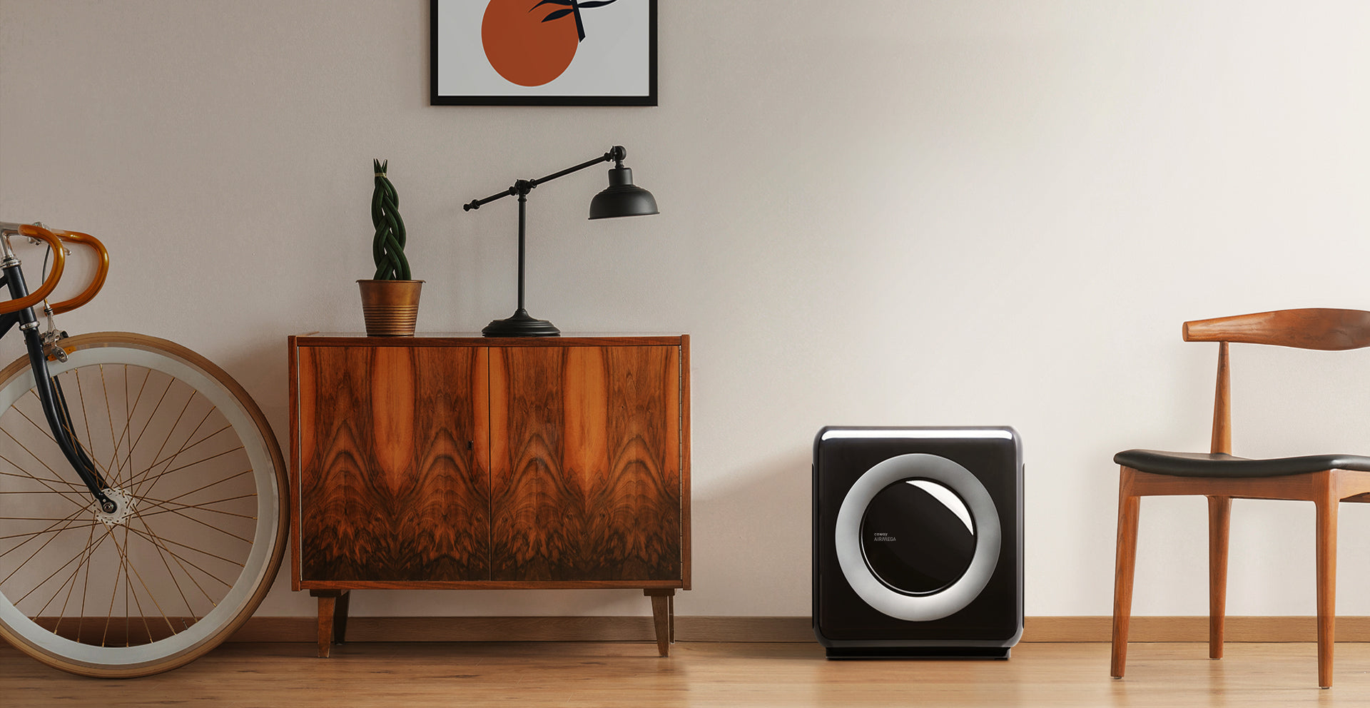 Its pollution sensor communicates indoor air quality in real-time by the colored LED