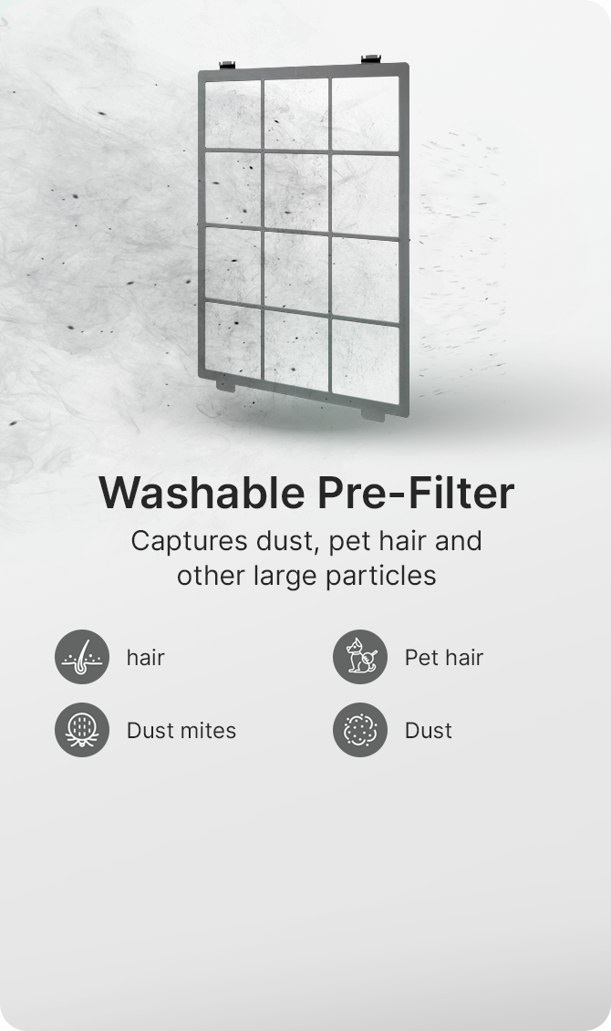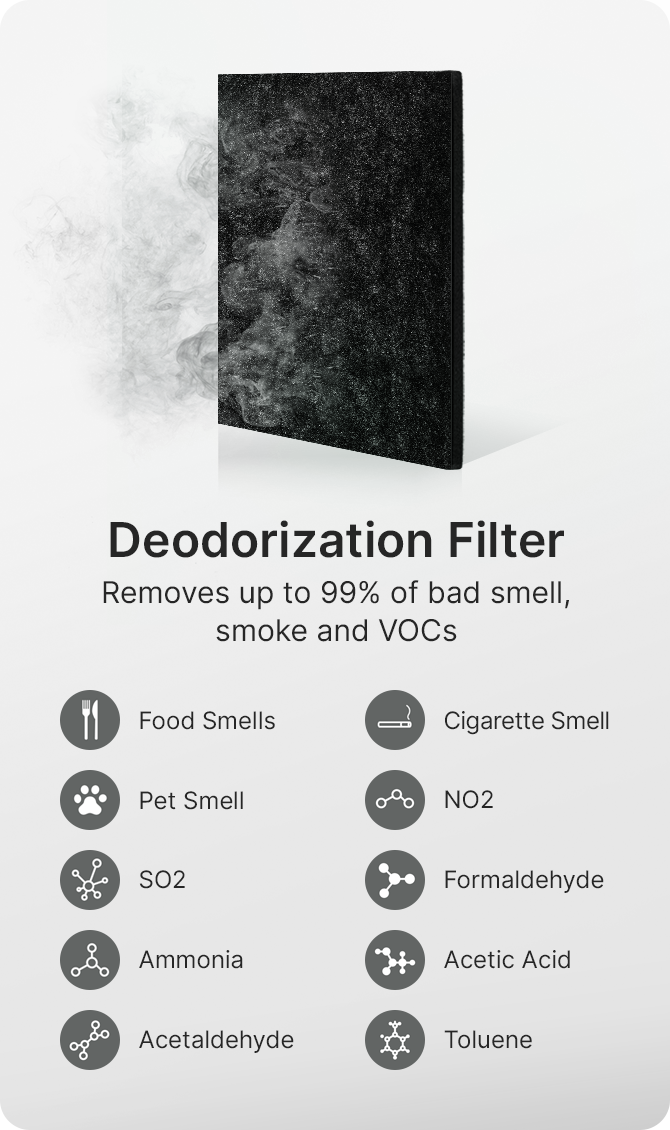Pre-Filter + Deodorization Filter + Ultrafine Particle Filter + Vital Ion