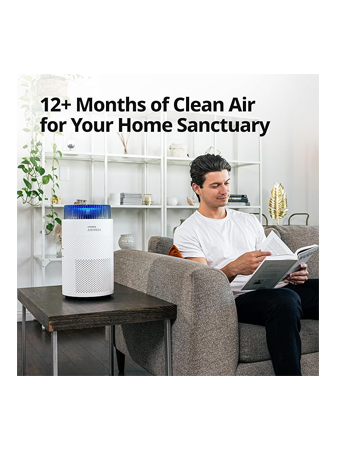- [Eliminates 9.999% of Airborne Allergens Particles] Combination of a pre-filter, deodorization filter, and True HEPA Filter removes 99.999% of nano-sized particles down to 0.01-micron, including pollen, dust, and other allergens. It also reduces 99% of volatile organic compounds and odor.